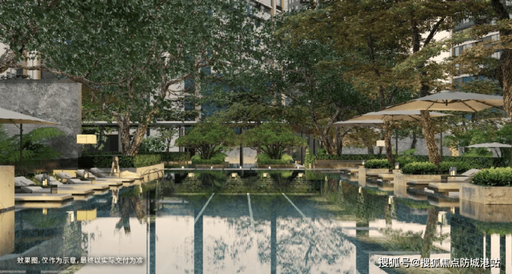 中央园林以“湿地畔·生活场”为主题,通过“一轴(中央景观轴)三进(入口礼仪广场、中央水景、归家花园)八景(樱花大道、荷花池、银杏林、梅花径、儿童乐园、老年活动区、邻里会客厅、健身步道)”的布局,营造沉浸式自然体验。约800㎡无边际泳池与儿童戏水池相邻,配备智能水质监测系统;约1500米滨水漫步道串联观景平台、休闲驿站,让业主在湿地江风中享受慢生活。此外,项目还规划了社区农场、萌宠乐园等特色空间,让业主在自然中感受生活乐趣。