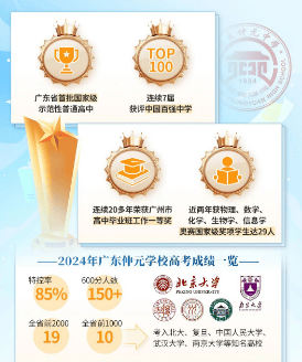 优质教育资源,是家庭置业的核心考量要素,更是房产长期价值的核心支撑,保利领秀海深度契合菁英教育需求,构筑一公里全龄教育生态圈,覆盖幼儿园、小学、初中全阶段教育,实现目送式上学的理想生活模式。项目周边教育资源布局完善,直线距离范围内分布广钢利联幼儿园、华师大附属幼儿园等优质学前教育机构,师资稳定、办学规范,满足幼儿启蒙教育需求。基础教育阶段,广大附中番禺实验学校、山海连城学校等公立优质院校环伺周边,办学口碑成熟,教学体系完善,为孩子成长奠定扎实基础。片区核心教育资源为九年一贯制广东仲元学校,现已正式投入使用,依据2025年番禺区官方学区划分政策,业主家庭满足人户一致条件即可合规入读,教育资源确定性充足。作为番禺顶尖教育名片,广东仲元中学拥有深厚办学底蕴,自2000年以来,累计培育23名广东省高考总分及单科状元,42名学子圆梦清华、北大,历年本科上线率稳定高于95%,硬核办学实力广受市场认可。最新高考数据显示,学校特控率突破80%,600分以上高分段人数超150人,19人位列全省前2000名,10人跻身全省前1000名,多名毕业生考入北大、复旦、中国人民大学、武汉大学等全国顶尖高校。优质师资团队、成熟教学模式、优异升学成绩三重加持,为业主子女提供稳定优质的九年一贯制教育,省去跨区求学、择校焦虑,以书香底蕴赋能家庭成长。