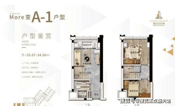 户型方面,项目主推 30-75㎡精装产权复式,涵盖 30-40㎡小面积户型与 50-75㎡大户型,满足不同人群的置业需求。30-40㎡小面积户型,总价 56 万起,低门槛入手城芯资产,适合年轻刚需自住、单身精英居住或小型创业办公;50-75㎡大户型,总价约 100 万出头,空间更宽敞,适合小家庭居住、多人办公或高端租赁,户型格局方正,采光通风俱佳,4.5 米挑高打造双层独立空间,下层规划客厅、厨房、卫生间、休闲区,上层规划卧室、储物区,动静分离,功能分区明确,居住舒适度与实用性拉满。