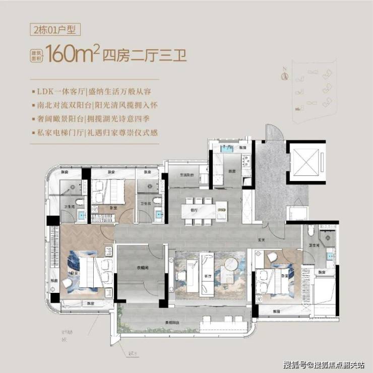 户户私享近100%实用率,私享约10-13㎡专属私家电梯厅