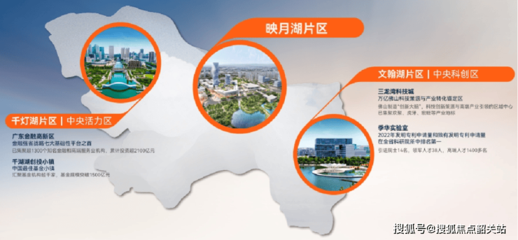 千灯湖-映月湖-文翰湖,三湖架起桂城城市发展格局。作为广佛同城极核C位,映月湖是桂城发展的腰部板块,城市发展新核心。其中映月湖中央人文区,未来10年投入约2千亿推进文化:社区、产业、交通、民生、生态六大工程。
