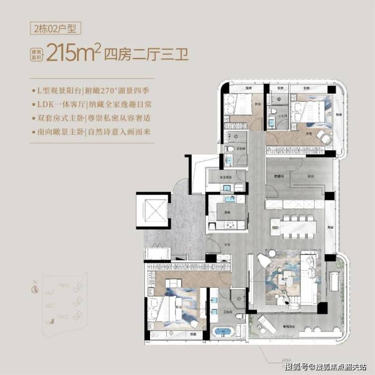 全部户型270°环绕飘窗,L型转角景观阳台,双阳台