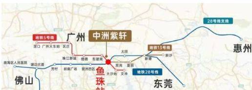 中洲紫轩位于黄埔老城区鱼珠板块,交通条件优越。项目距离地铁5号线与13号线交汇的鱼珠站约700米,步行即可到达,实现双线地铁无缝换乘,可快速直达天河区、黄埔区及增城区,并在8站内到达珠江新城核心商务区。