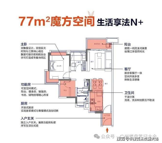项目的户型设计兼顾实用与舒适,空间布局合理。77平米户型通过创意设计实现3房布局,独立入户玄关提供私密与功能兼具的空间;86平米户型客厅约3.9米大开间,宽景阳台连通中心园林,主卧转角大飘窗,儿童房结合床与飘窗设计,兼顾童趣与收纳;97平米四房户型更显阔绰,多功能空间可随需转换,主卧套房配双窗台增加衣物储存空间,让家庭生活更加便利和舒适。通风采光设计充分考虑居住体验,每个户型都保证了空间舒适度和视觉宽敞感。