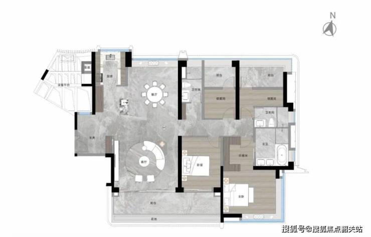 约220㎡新派科技豪宅:两梯两户、南北对流,尽享南北双园林景观。