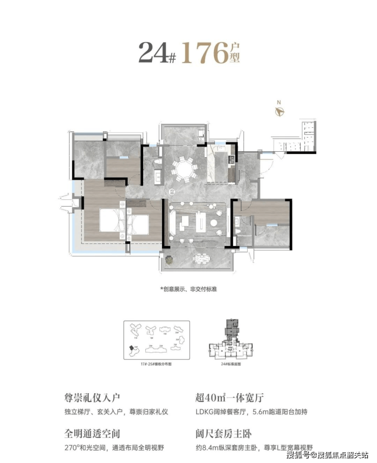 230平户型拥有私家电梯厅、双主套、独立佣人房、南北对流、LDKB大方厅、主卧L型270°飘窗等,大大提升了整体的空间体验。