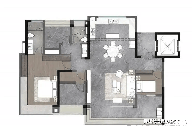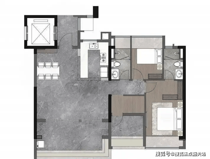约44㎡客餐厨公区,空间感堪比180㎡大平层;