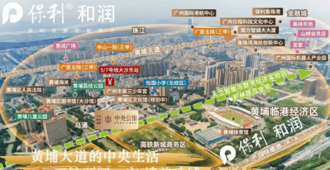 保利中央公馆坐落于黄埔区的核心位置,周边配套成熟,交通便捷。项目距离地铁5号线和7号线交汇的大沙东站仅约800米,步行几分钟即可到达。从这里出发,可以快速抵达珠江新城、金融城等重要商务区,通勤十分便利。此外,项目紧邻黄埔大道、中山大道和广园快速等城市主干道,进一步提升了出行的便捷性。