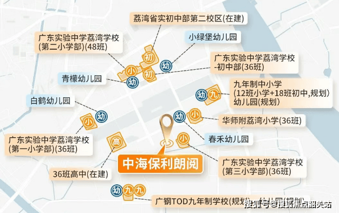 项目与广东实验中学荔湾学校第三小学部(省实三小)仅一路之隔,步行约50米,该校已于2022年9月开学,生源稳定。周边还分布省实一小、省实二小、华师附小及广东实验中学荔湾学校初中部,2024年中考成绩表现亮眼。更值得期待的是,片区内规划32所全龄段学校,形成15分钟教育圈;项目自身配建一所36班初中(已确定引入省实品牌)和一所36班高中,预计2025年竣工。对重视教育的家庭而言,这里不仅“有学上”,更具备长期教育资源兑现力。