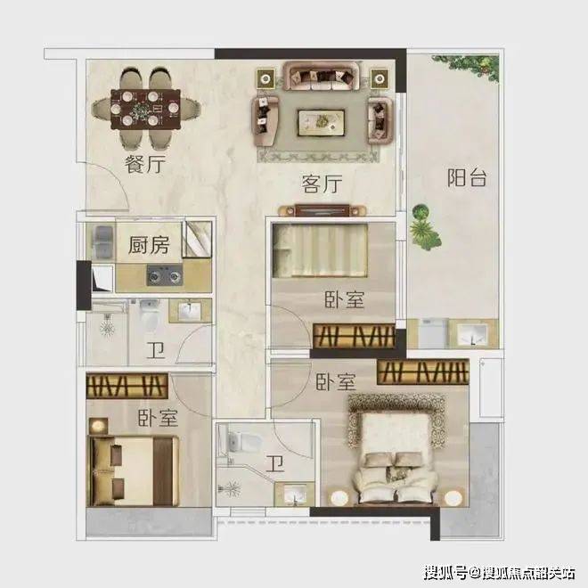 F户型 建面约92m² 3房2厅2卫