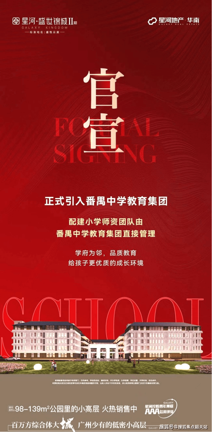 星河盛世锦城拥有优质的教育配套,九年制学校为孩子成长提供家门口的成长护航。项目西侧一路之隔就是公办九年一贯制学校番禺中学教育集团,未来接送孩子只需步行穿过两个路口,实现近距离教育。社区内配建的幼儿园已封顶,满足学前教育需求。