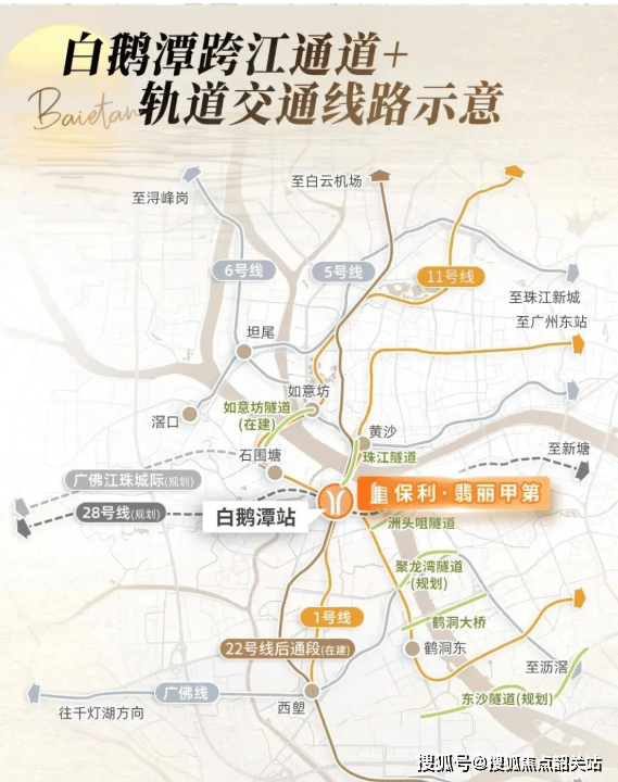 项目步行约200米即达地铁1号线芳村站(即将更名为“白鹅潭站”),未来将实现四轨交汇——1号线贯穿天河主城,11号线环线串联城市中心,22号线高速连接白云机场与广州南站,28号线贯通佛山、东莞。立体交通网络让业主30分钟内通达全城核心板块,高效链接湾区资源。