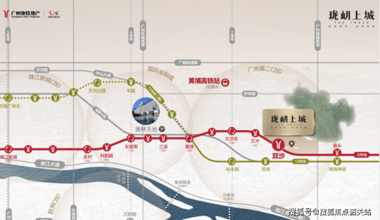 珑岄上城地处黄埔临港经济区核心板块,紧邻地铁5号线双沙站,步行约50米即可抵达,是真正意义上的TOD上盖项目。地铁5号线作为广州东西向主干道,可快速直达金融城、珠江新城、杨箕等核心CBD区域,通勤效率极高。自驾方面,毗邻黄埔东路、大沙东路等主干道,并可通过广深沿江高速快速连接深圳、东莞等地,形成大湾区一小时生活圈。此外,项目北侧紧邻龙头山森林公园,直线距离仅百余米,自然环境优越,居住氛围静谧宜人。随着片区产业升级与旧改持续推进,该区域正迎来新一轮发展红利,未来潜力巨大。