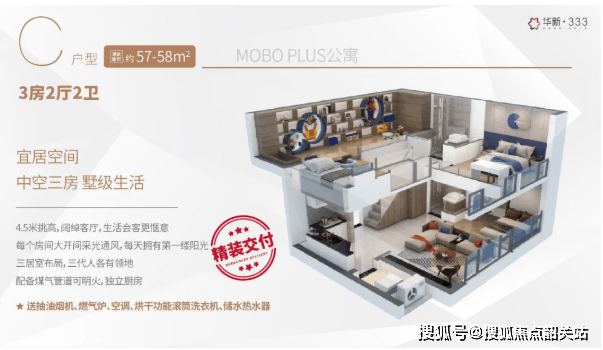 华新·333的LOFT产品,面积段精准锁定在33至58平方米之间,看似小巧,实则暗藏乾坤。其核心秘诀在于4.5米的傲人层高。在普通的住宅项目中,层高通常在2.8米至3米之间,而4.5米的层高,意味着可以在垂直方向上进行灵活的分割,创造出“买一层送一层”的超值空间体验。通过巧妙的设计,33平方米的户型可以变身为舒适的一房一厅,而58平方米的户型更是可以惊艳地打造出三房两厅的格局。这种极高的空间利用率,彻底打破了小户型=拥挤的刻板印象,让小面积也能承载大梦想。
