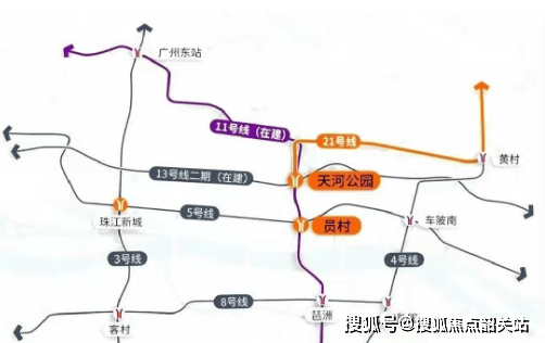 至天河公园站换乘11号线(环线),直达琶洲、员村、广州东站等核心区域;
