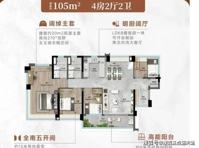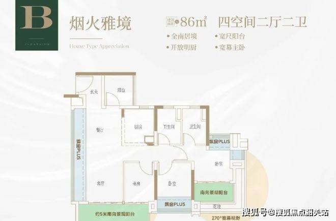 户型设计超赞。建面约 78㎡三房两卫,约 11 米南向 4 开间面宽,房间和客厅全朝南,客厅开间约 3.45 米,主卧还有 270°IMAX 视野、独立卫浴和智能马桶。86㎡园景四空间,约 11 米全南向四开间,约 5 米长南向 270° 景观大阳台。108㎡南北对流四空间,约 15 米南向五开间,270° 景观双面宽大阳台。而且户型使用率最高可达 110%,空间利用率高,性价比突出。
