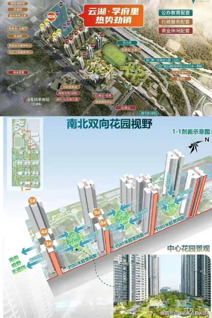 生态:约18万㎡围合式中央园林+5公里慢跑道,外部紧邻3000亩白云湖湿地公园,是中心区难得的“公园里的家”。