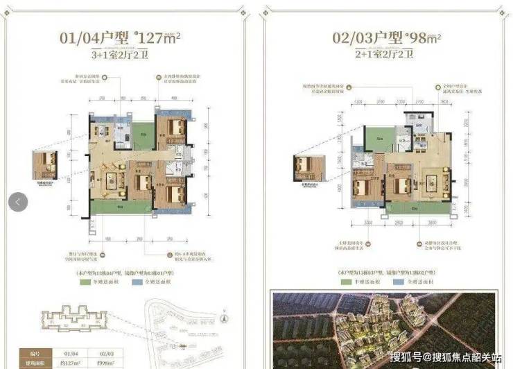 在售面积:95-127㎡ 3房2厅2卫/4房2厅2卫