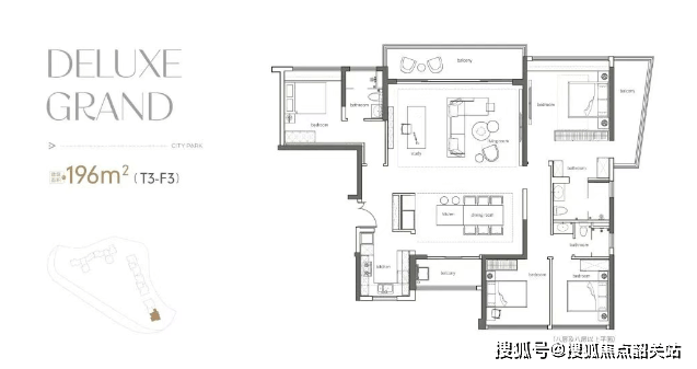 190㎡四房两厅三卫双主卧:T2创新空间组合,7米景观阳台,9米阔绰横厅,约55㎡餐客厅一体化设计,南北通透全明采光,IMAX级云山视野。