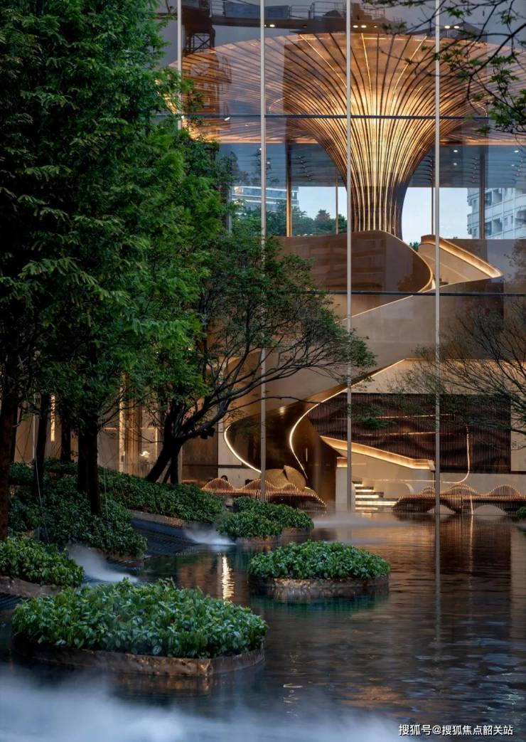 项目的园林景观设计同样令人赞叹,由亚洲景观大师塔瓦才·科博凯奇亲手打造,采用了“树宅相生”的设计理念,一年四季景观各异。园林不仅局限于社区内部,还延伸至繁华大道,种植了黄花风铃木等植物,形成了独特的视觉享受。负一楼的浮岛森林更是全国首个38米立体式云杉流水画卷,汇集了多种名贵树木,营造出一片绿意盎然的天地。