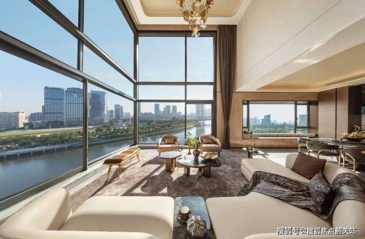 在建筑设计上,灯湖缦云采用了极具东方韵味的风格,通过大面积玻璃幕墙与中国传统艺术美学相结合,创造出既具现代感又不失古典韵味的独特立面特征。同时,创新性的户型设计如3.5米层高的空中滨江天墅、55㎡+的超级公区空间等,极大地提升了居住舒适度和空间利用率。