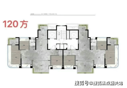 120平方米户型:数量较少,约90套。南北对流双阳台四房设计,设有全景舱,减少实体墙,增加玻璃采光面,门墙一体化设计确保静音效果。
