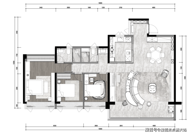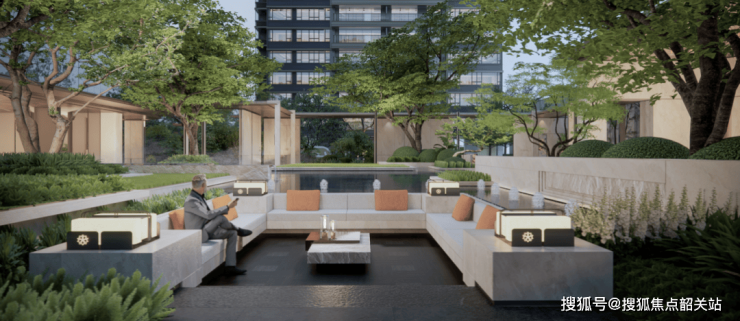 景观设计以约7.2万平方米超级现代美学花园为核心,将高奢酒店基因融入园林规划。中心轴线水院与光影游廊构成主要视觉焦点,下沉式卡座提供休憩社交空间。儿童游乐区首创龙舟主题,结合在地文化元素打造沉浸式游戏场景。五进归家礼序从小区主入口延伸至单元大堂,酒店式接待空间强化仪式感,同时配备遮阳廊架与休憩座椅的中央草坪面积约2000平方米。