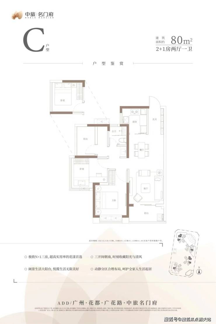 中旅名门府建筑采用蝶形布局、点式独栋设计,整体南低北高格局,实现南向采光面最大化,在售户型为80-101㎡全南向三至四房,极致20层高保障每户的通风采光及景观视野。