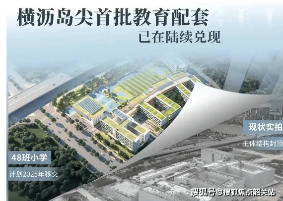 横沥岛整体规划教育资源丰富,涵盖 3 所小学、3 所九年制学校、1 所十二年制学校及 1 所国际学校。其中与项目相距约 500 米的 54 班九年一贯制学校已获批建设,预计 2026 年投用,另有 1 所 48 班小学将于 2025 年投用。虽然目前尚未明确名校引进品牌,但依托横沥岛的高端定位,未来大概率会引入优质教育集团与实力师资,为业主子女提供从小学到初中的连贯教育服务。
