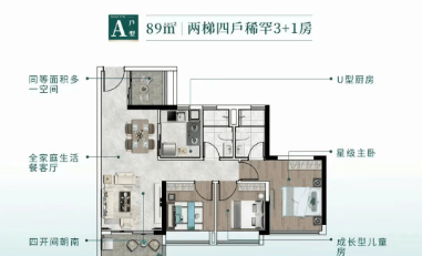 项目共开发 A1 和 A2 两栋住宅,面积为 89 - 112㎡的南向四房和五房户型。1 - 2 层为商铺与公共配套,3 层设有架空层,4 层起为住宅,这种布局既保证了居民生活的便利性,又营造了舒适的居住空间。营销中心位于 A1 栋底商,未来将改造为商业配套,进一步提升项目整体价值。户型设计实用,均为 + 1 房,2 梯 4 户,89 平可做到 4 房,112 平可打造为 5 房,满足不同家庭结构的居住需求。同时,项目为精装交付,且由国企珠实地产打造,品质与交付双重保障,让购房者更加安心。