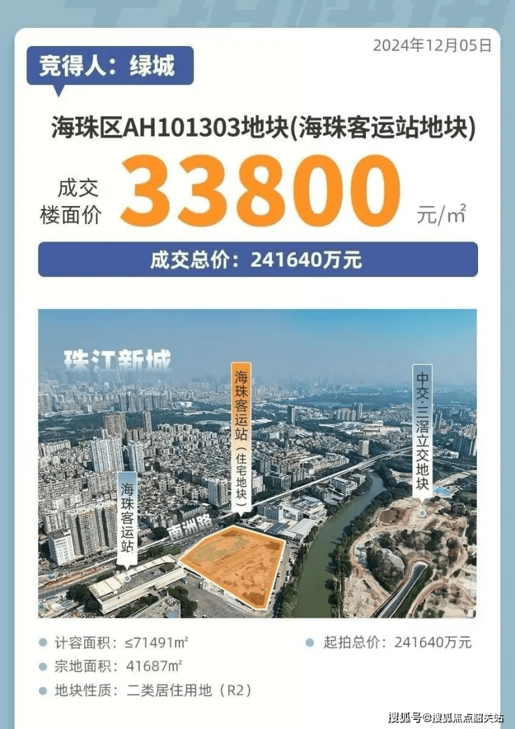 2024年12月5日,绿城中国以总价24.16亿元、楼面价3.38万元/平方米(未扣除配建)拿下广州海珠客运站地块。这是继2014年广钢地块之后,绿城在广州中心区再次拿地。此次开发的“繁花双新”之一——绿城馥香园,位于广州市海珠区核心位置,汲取岭南名园“十香园”的灵感,旨在为居民提供高品质的生活体验。