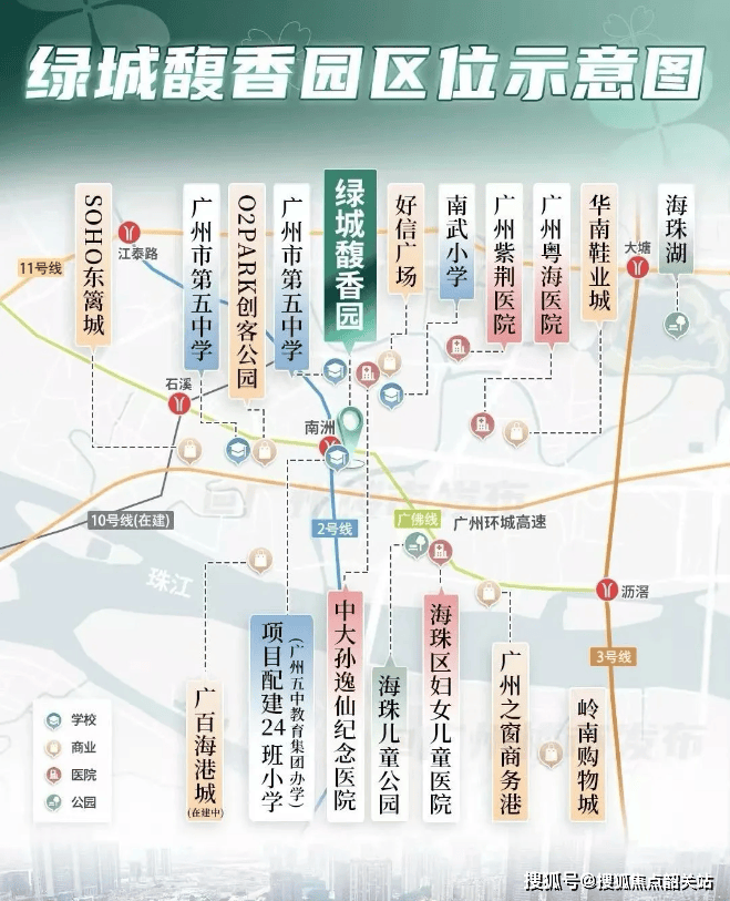 绿城馥香园不仅在地理位置上具有显著优势,其周边配套设施同样丰富多样。项目背靠河涌,打造了一个滨河公园,同时与周边的海珠儿童公园、海珠湖及海珠国家湿地等形成巨大的生态背景板。小区内部设计了六大社区花园,外部则优化了南侧水道,营造出一线河景+双公园的独特景观。