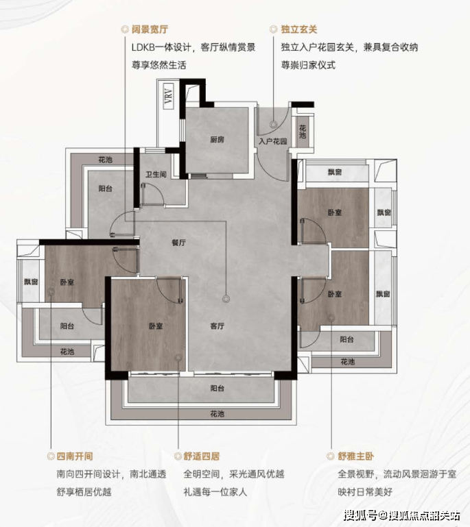项目主推约85-128㎡全南向超高使用率的新规三至四房,其中包含: