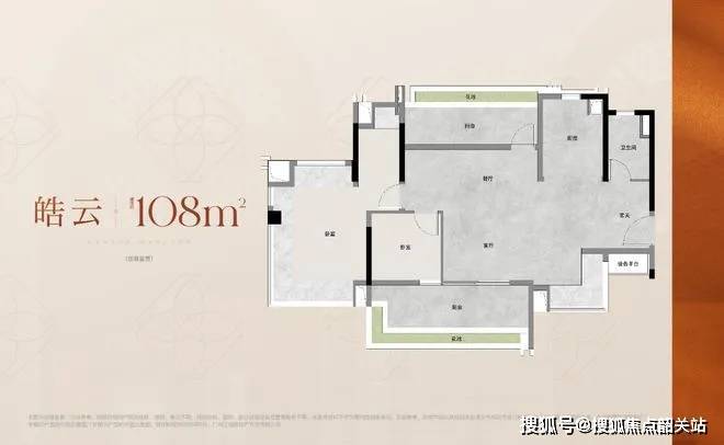 建面约108㎡四房两厅两卫:适合二胎家庭或需居家办公的群体。四开间朝南,主卧套房配置步入式衣帽间;LDK(客厅+餐厅+厨房)一体化布局,增强家庭成员互动;次卧与书房灵活可变,满足不同阶段生活需求。阳台进深超2米,可打造小型休闲区,得房率约120%。