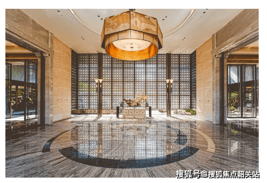 二进阶为会所大堂“余荫山堂”,双层会所打造专属生活场域,涵盖会客厅、文昌阁、健身区、艺术门厅等多元功能,业主可在这里健身、会客、休闲,满足日常社交与休闲需求。大堂设计传承岭南名园“余荫山房”遗韵,祥云屏风、开枝散叶窗花纹样、云水交融吊灯、烫金手绘园林四季图等细节,处处彰显文化底蕴与品质感。