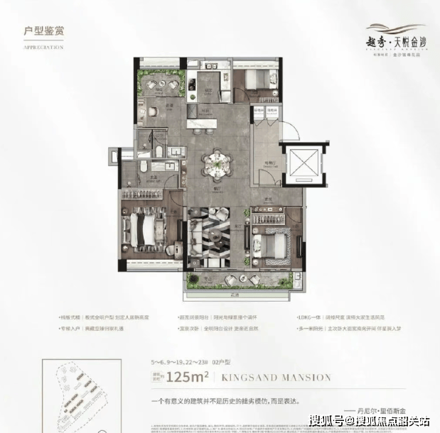 建面约125㎡:南向主套五房,6.85米阔景阳台,享受鲜氧生活。