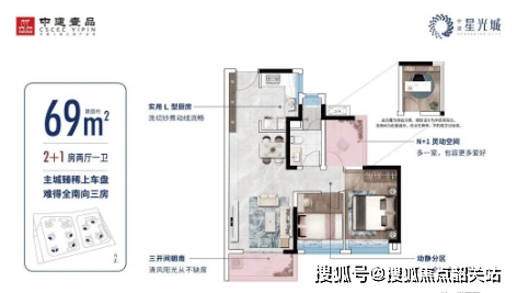 该项目提供了多种户型选择,包括69㎡至100㎡不等,能够满足不同家庭结构的需求。全南向户型设计确保每个房间都能享受到充足的阳光,同时户型方正实用,空间利用率高,最高可达96%,为住户提供了宽敞舒适的居住环境。
