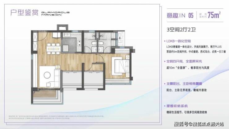 75㎡三房两卫:市场罕见小户型,三开间朝南,主卧带独立卫浴,适合预算有限的三口之家;