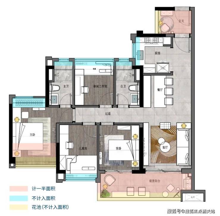 一期部分105方四房:6.2米270°观景大阳台、超98%实用率,中心区最笋湖景房。