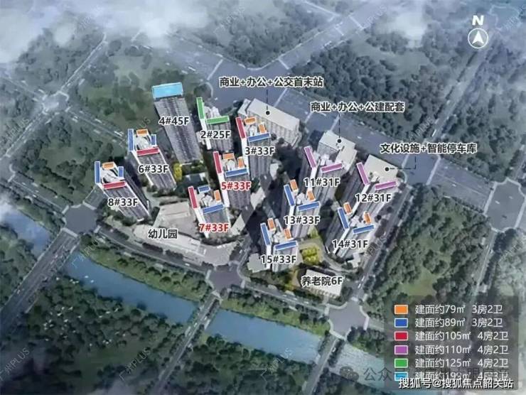 主推面积:约79-89-105㎡三至四房,使用率可达90-94%。