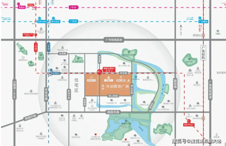 位于大良东区的悦府项目,坐落在驹荣北路站TOD旁,是顺德中心城区的核心地带。这里不仅文化底蕴丰厚,而且生态环境得天独厚,吸引了众多开发商的目光。周边有南国东路、碧桂路等主要干道以及广珠西线和广州绕城高速两条高速公路,交通极为便利。同时,地铁3号线在小区楼下设有站点,为居民提供了便捷的城市公共交通服务。