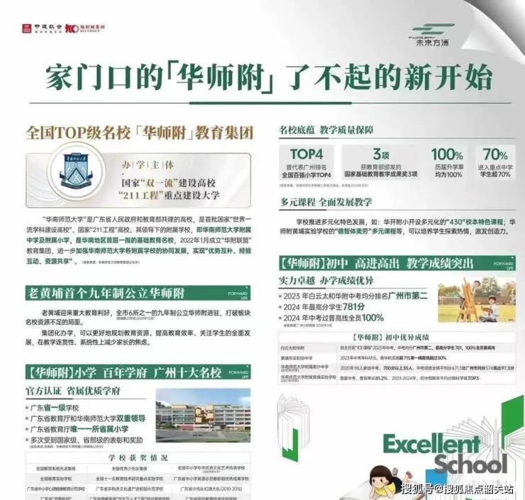 老黄埔首个 9 年制 “华师附” 教育体系,华南师范大学附属学校作为双一流、首批国家 211 工程大学的附属学校,教育背景强大,资源丰富。华师附小升学率 100%,重点中学录取率超 70%;华师附中更是被誉为 “神学院”,教育成果显著。
