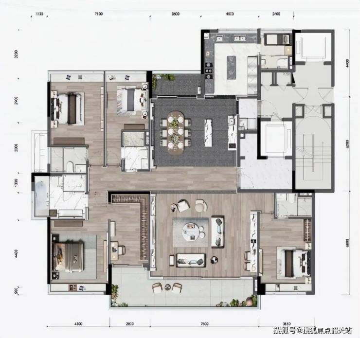7、户型设计上,合景·臻颐府展现出对品质生活的执着。项目均为建面200 - 350㎡的纯粹业主圈层大平层,采用三梯两户设计,实现专梯专户享受,保障了业主的私密性。双阳台观景设计,让居民能够从不同角度欣赏到小区内外的美景,开阔客餐厅营造出宽敞舒适的公共活动空间,中西双厨满足了不同烹饪需求,部分户型3.5米PLUS层高,大大拉满了生活尺度,提升了居住的舒适度和品质感。这种大平层设计,为业主提供了宽敞的居住空间,满足了家庭成员多样化的生活需求,无论是举办家庭聚会还是享受个人独处时光,都能找到合适的空间。