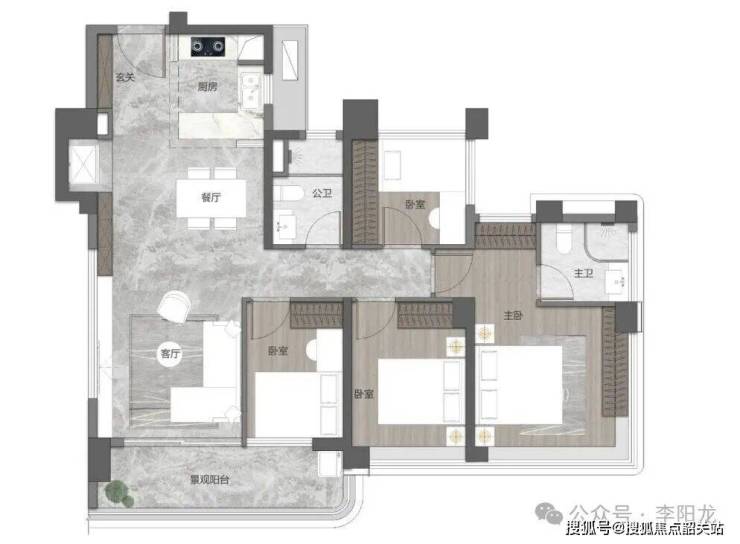 116㎡四空间两厅两卫 江界四开间朝南,约 15.8m 采光面双 L 型景观面,双面宽巨幕瞰江阳台,纵览浩瀚珠水美景南北通透对流灵动大宽厅设计独立入户玄关兼具收纳与归家仪式
