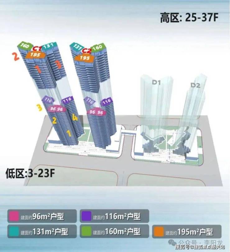 🏆在售楼栋:在售 C1-C2-D1栋🏆在售产品:3-23层:两梯四户96㎡-116㎡25-37层两梯三户:131㎡/160㎡/195㎡