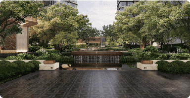 外立面采用香槟金晶感玻璃幕墙,配以流线冠顶,整体建筑观感极具未来感与豪宅气场。园林景观汲取岭南韵味,打造330米南北景观轴线、下沉庭院与空中花园,配套约2900㎡高规格会所,涵盖艺术酒廊、恒温泳池、私宴厅等功能,堪比星级酒店配置,打造沉浸式社交体验。