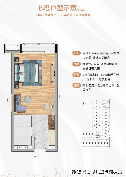 推售建筑面积约为36-43平方米的酒店行政公馆以及31-54平方米的中轴精品空间,3.4-3.6米高的空间设计,同样合理规划了卧室、厨房和卫生间,满足多重需求。无论是用于居住还是办公,都能享受到宽敞舒适的空间体验。