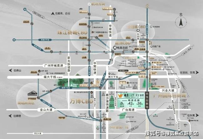交通出行方面,虽然项目距离地铁7号线板桥站约3公里,步行距离较远,但通过骑行电动车仅需10多分钟即可到达。更重要的是,小区已开通直达地铁板桥站的业主楼巴和公交车首末站接驳巴士,高峰时段15分钟一班,被称为“十分巴士”,极大地缓解了通勤压力。自驾出行方面,项目紧邻兴业大道、南大干线等番禺东西向发展大动脉,可快速串联万博CBD、广州南站等核心板块;通过南沙港快速、新化快速、番禺大道,可无缝衔接珠江新城、琶洲等核心区;经金光东隧道,可速达大学城一期。