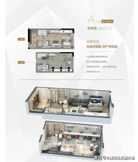 华新方圆333推出的1-3房住宅式LOFT&双钥匙户型,以其灵活多变的空间布局和4.5米的层高成为一大亮点。无论是年轻人的第一套房,创业者的办公场所,还是投资者的长期资产,华新方圆333都能高度匹配各种需求。其采光通风良好,客厅空间宽敞,部分户型配备燃气管道及独立厨房,充分考虑到了生活的便利性和实用性,真正做到了空间美学与实用性的完美结合。