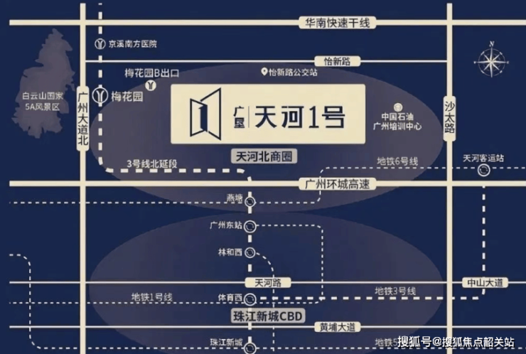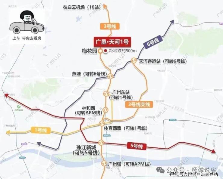 4. 广垦·天河1号周边地铁线路形成密集网络,轻松实现穿梭湾区各处。项目西侧约400米即达地铁3号线梅花园站B出口,3号线作为广州交通主动脉,串联起天河CBD、广州东站等重要节点,两站可达广州东站枢纽,五站畅达珠江新城CBD,日常通勤高效便捷。地面交通同样优势明显,紧邻广州大道主干线,东向2公里衔接沙太路立体交通网,无缝对接环城高速、内环路及华南快速等要道,半小时可通达全城。依托大湾区高速路网,1小时内可畅达粤港澳大湾区核心城市,无论是市内通勤还是跨城出行,都能轻松应对,让穿梭湾区各处变得高效自如。